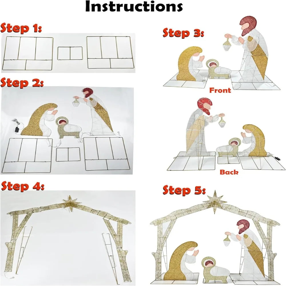 Celebrate Christmas with a warm, glowing outdoor display using our 5.5FT Lighted Nativity Scene. Featuring the Holy Family illuminated with bright LED lights, this durable, waterproof décor adds peaceful charm to any yard or lawn. Easy to set up and made to shine all season, it creates a beautiful holiday scene perfect for nighttime displays and festive gatherings.