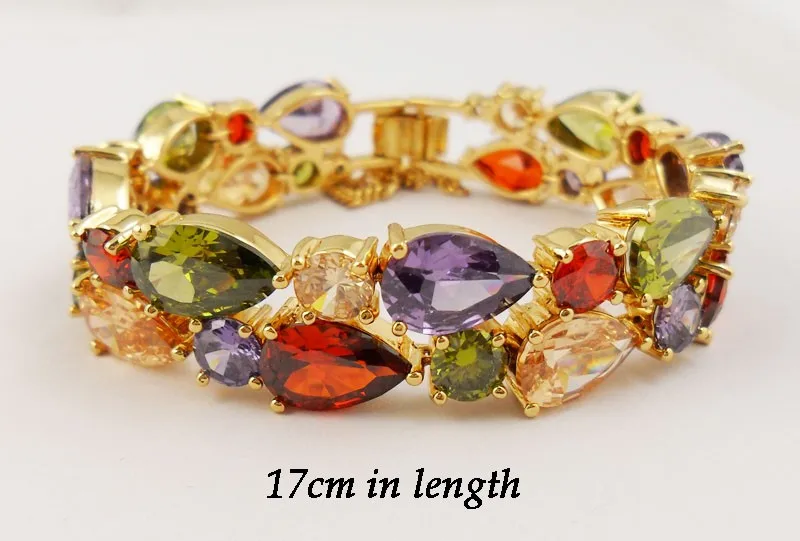 This bracelet is absolutely stunning! The multicolor zirconia stones catch the light beautifully and make it look way more expensive than it is. I wore it to a wedding and people thought it was fine jewelry