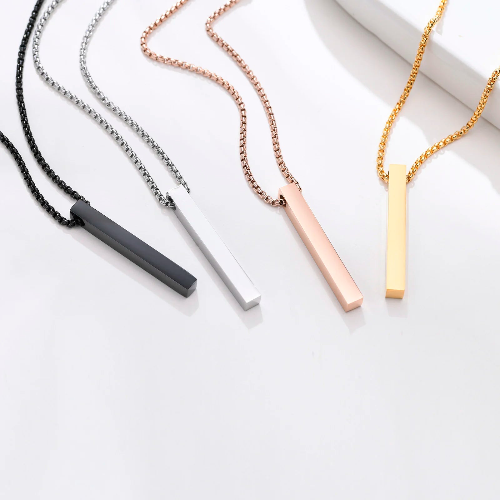 Waterproof Stainless Steel Bar Pendant Necklace – Unisex Minimalist Jewelry